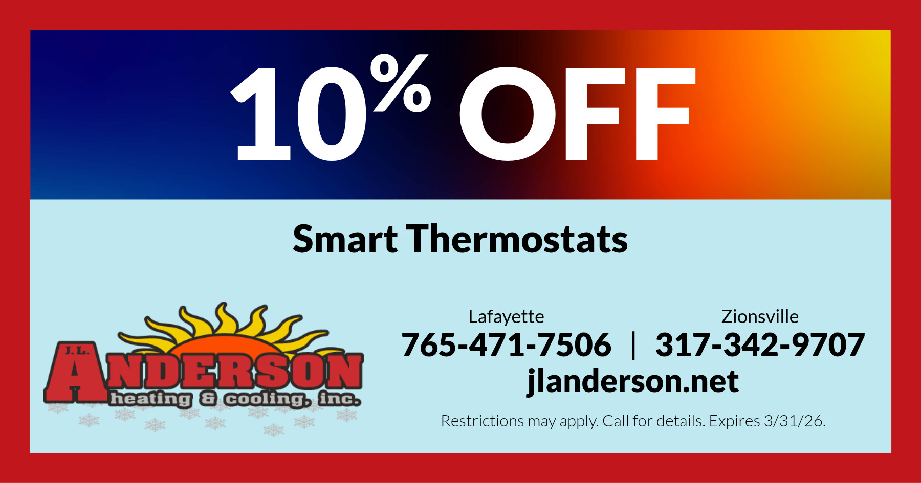Contact the experts at JL Anderson Heating & Cooling.